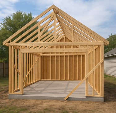 Exterior wall framing 2x4 or 2x6. 2x6 is ideal for more insulation if you plan on working there often.